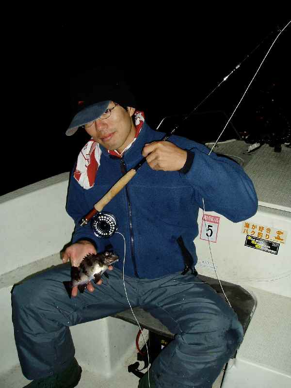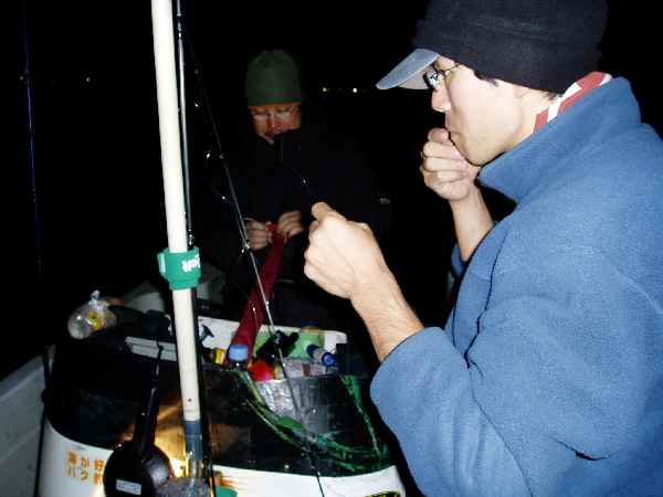 久しぶりの船の上で、悪戦苦闘の小生を尻目に、カキウチ君ビシバシヒット。