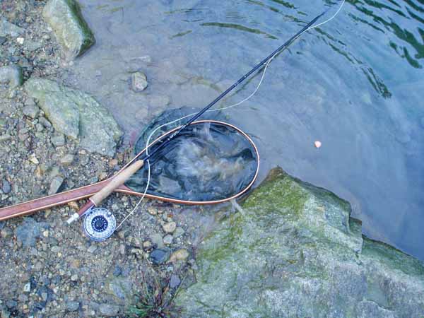 サイズはともかく、ここのニジマスは良く引いてくれて面白いですよ。