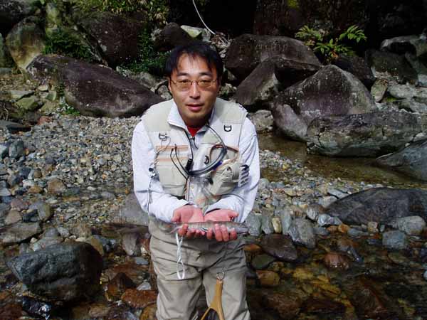 フライフィッシングって面白いでしょ、良かったね初めて釣れて。