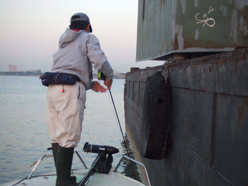 まずは台船の周辺からキャスト開始...