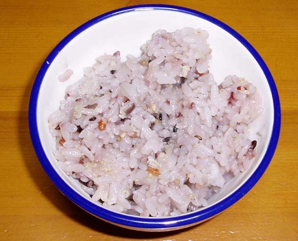 ご飯にも気を使っておりまして、これは十六穀のご飯を赤飯にみたてております。
