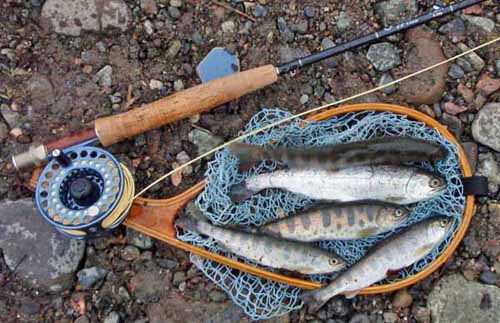 4匹は放流のアマゴ、真ん中の一番大きな奴が釣れると嬉しいですね。