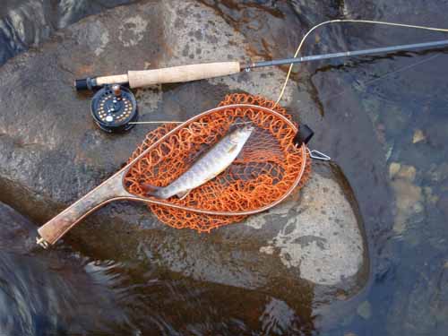 新調したカリンのネットに収まったのは37cmのイワナ、顔が優しいのでメスでしょう。