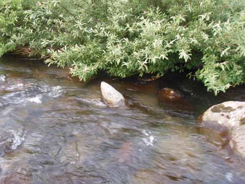 真ん中の沈み石のさらに奥で、20cm越えのイワナがようやくヒット、