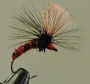 大物に備えた4Xのティペットに、まずはアマゴに効き目のある赤系のパターン、