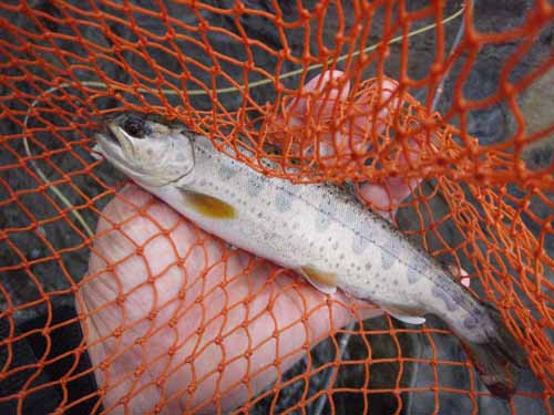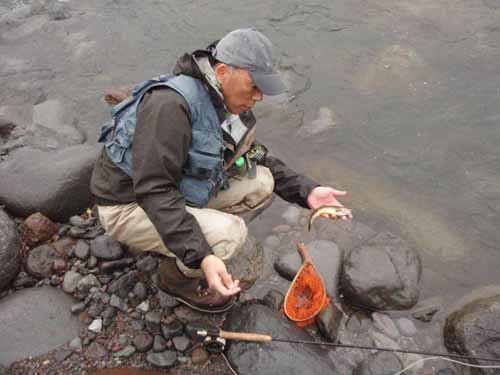 流れの速いポイントを流しますと、こんなアマゴもヒット。