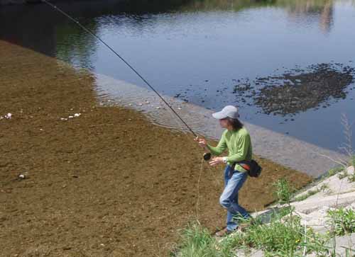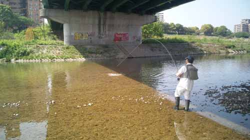 できるだけ日陰でやり取りしようと、橋の下でファイト中。