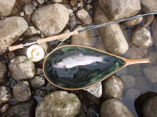 本流でまぁまぁのサイズのニジマスを掛けますと、引きが強くて面白いですね。