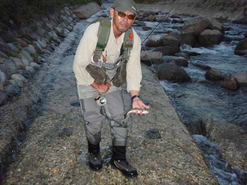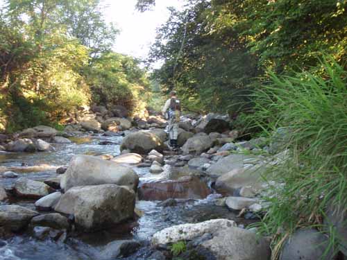 しょうがない、隣の小さな川に入ります。