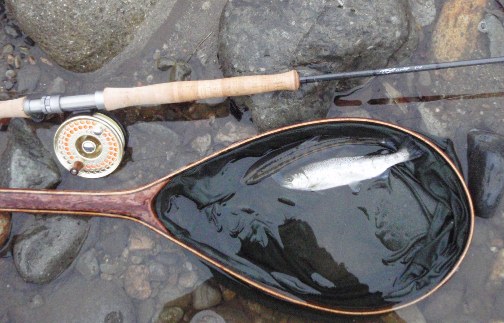 オイラが陣取ったポイントには、まったくライズがなく、しょうがないので秘密のニンフにショットを打って何とか1匹ゲット。