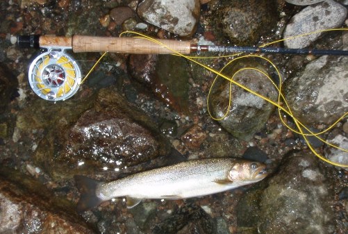フライが見にくくなった7時過ぎに、まぁまぁのサイズのイワナがヒット。