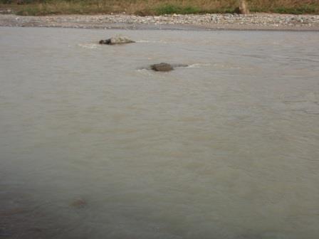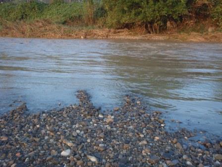 すぐに車に飛び乗って、濁りの到達が一番遅い、最下流のポイントを目指します。