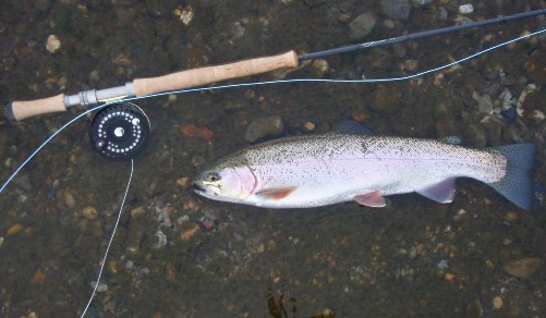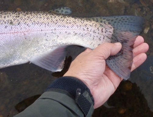ここをゆっくりと釣り下っておりますと、ちょっとだけフライをつつくアタリがでました。