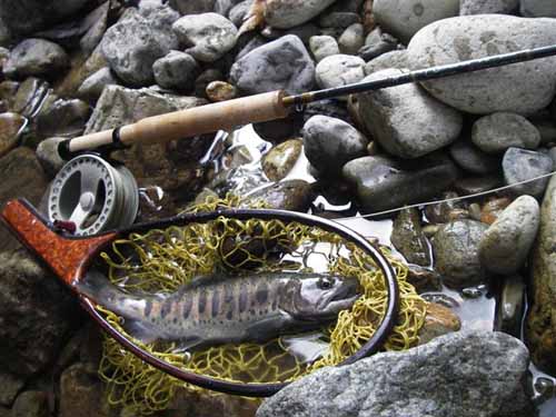 一番乗りでの入渓でしたが予想以上のスレっぷり、22番のフローティングピューパしか見向きもしません・・