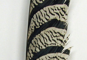 下の画像のように、古くからサーモン系のハックルやウィング材として愛用されてきました。