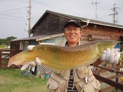 | 中西様、 アロワナ!!!ゲット、おめでとう。 それにしても、こんな管釣りがあるとは... 静岡県 浜名湖FR 2008/08/10 |