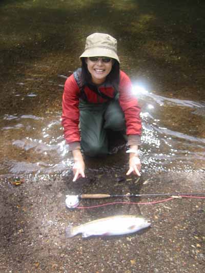 | 神田光史様、 綺麗なアマゴゲットおめでとう! 南紀のアマゴは別嬪さんですね。 和歌山県 日高川 2008/06/07 |