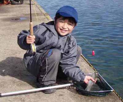 | 鈴木郁矢君(小学2年生)、 ニジマスゲット、おめでとう。 岐阜県 月見ヶ原 2008/11/22 |