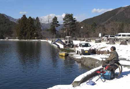 | 八王子在住のK・T様 素晴らしい画像を送っていただきまして本当にありがとうございました。 小生と同様に、この画像を拝見した多くの方が、きっと励まされることでしょう。 人生を前向きに生きる勇気をありがとう!!! 雪の管理釣り場にて。 |