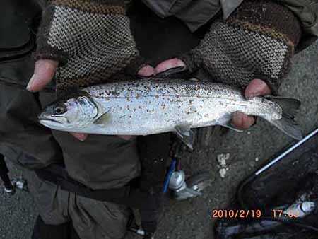 | 稲葉様 長良川本流のライズゲット、おめでとうございます。 御年60才越えでの、難しいシラメ狙いは本当にご立派!!! 我々の励みにもなります。 今回は綺麗なアマゴゲットで良かったですね。 岐阜県 長良川本流 2010/02/01 |