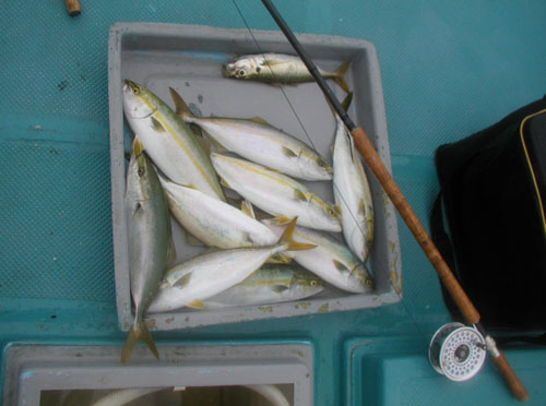 | FLY丸管理人の風来坊様、 ハマチ9匹ゲットおめでとう! マイボートは操船が大変ですよね、でもうらやましかぁ〜 愛知県 三河湾 2006/10/02 |