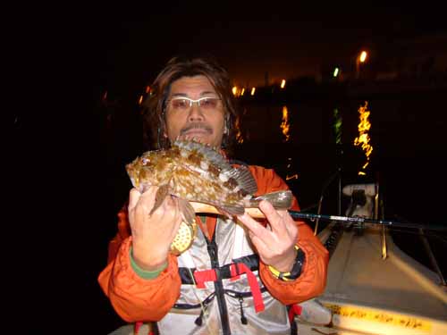 | 池本親分、 カサゴ27cmは立派です。本当におめでとう! 愛知県 名古屋港 2006/12/06 |