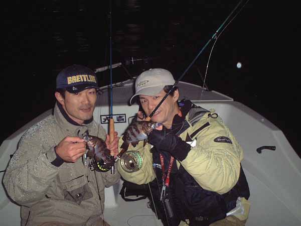 | 黒須修峰様、黒木省二様、 お二人とも、メバル爆釣おめでとう! 愛知県 名古屋港 2006/12/23 |
