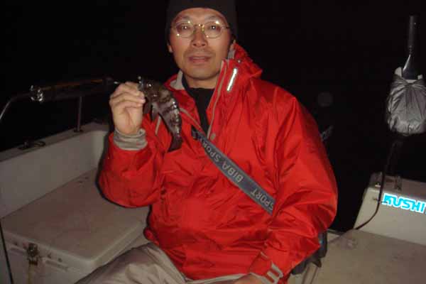| 毛利俊文様、初めてのチャレンジで良型ヒットおめでとう! 2003/11/27名古屋港 |