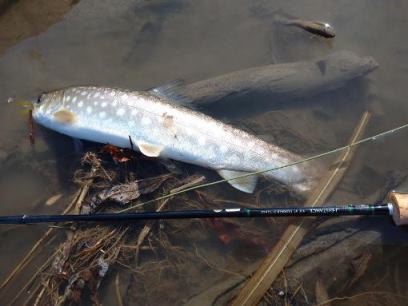 | フィッシャー:H様 日時:03/13 魚種とサイズ:アメマス40cm 場所;道内の河川 店主コメント:Jディスタンス907/4の入魂、おめでとう! |