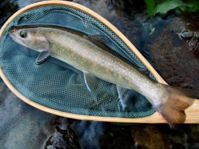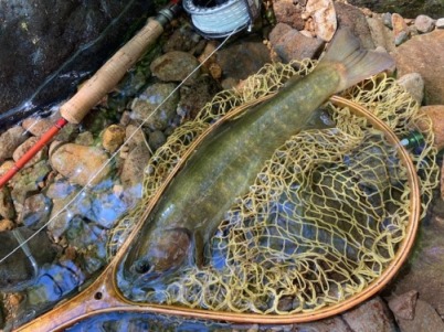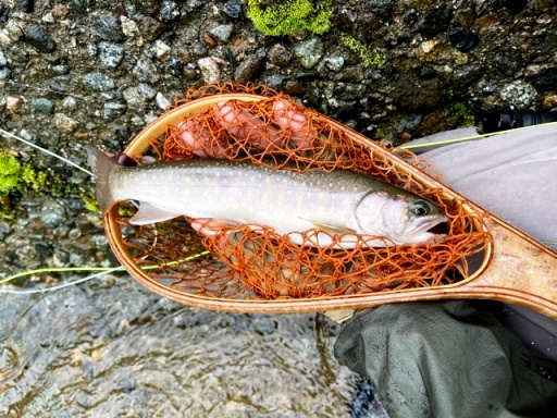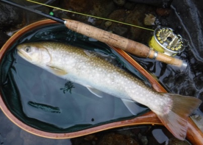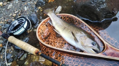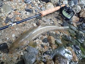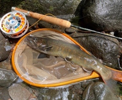 | フィッシャー:恒川先生 日時:04/28 魚種とサイズ:イワナ35cm 場所;石徹白川本流 ヒット フライ:#8アレキサンドラ 店主コメント:素晴らしいサイズ。 ウェットの釣果はさすがです。 |
