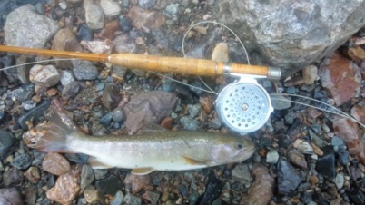 | フィッシャー:筧様 日時:06/25 釣果:イワナ30cm 釣り場:庄川支流 ヒットフライ:#13ライトケイヒル 店主コメント:2本目ですね、おめでとう! |