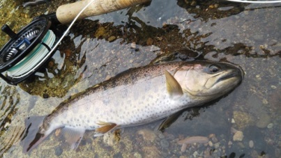 | フィッシャー:IWT様 日時:06/24 釣果:イワナ41cm 釣り場:九頭竜水系 ヒットフライ:#15アント 店主コメント:おめでとう! いうことなし! |