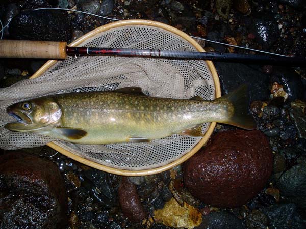 | フィッシャー:streamside様 日時:2006/07/12 場所:木曽川水系 魚種とサイズ:イワナ30cm アタリフライ:#15ヘアカディス 店主コメント:1号ゲットおめでとう!!!2号もがんばれぇ〜 |