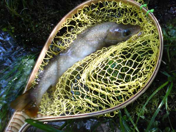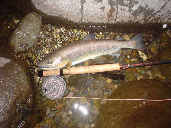 | フィッシャー:石原和幸様 日時:2006/08/19 場所:木曽川水系 魚種とサイズ:アマゴ30cm アタリフライ:#16フローティングニンフでライズ狙い。 店主コメント:今期3回目登場、さすが!!! |