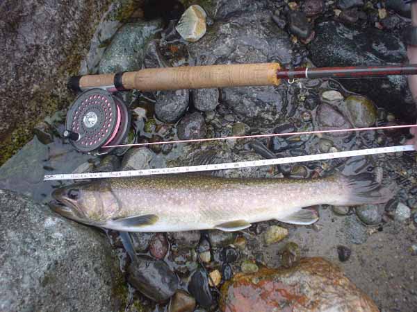 | フィッシャー:森岡正之様 日時:2006/08/09 場所:梓川 魚種とサイズ:イワナ34cm アタリフライ:#10エルクヘアカディスピーコック 店主コメント:尺イワナゲットおめでとう! |