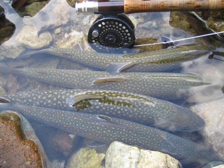 | フィッシャー:久保田泰生様 日時:2006/09/30 場所:庄川支流 魚種とサイズ:上の画像がイワナ48cm その下が2ケタ釣ったツワモノ達の一部の画像です。 アタリフライ:#8オリジナルニンフ 店主コメント:スッゴイ釣果でしたね、本当におめでとう! |