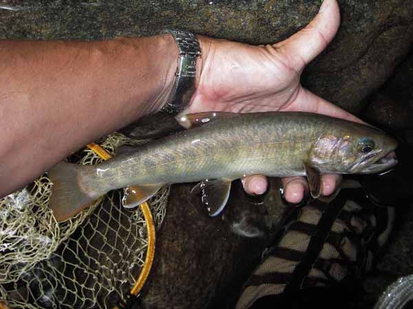 | フィッシャー:谷田部剛様 日時:2006/08/26 場所:高原川支流 魚種とサイズ:イワナ30cm アタリフライ:#12パラダン 店主コメント:スッキリと伸びた、器量良しのイワナですね、 本当におめでとう! |