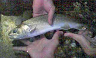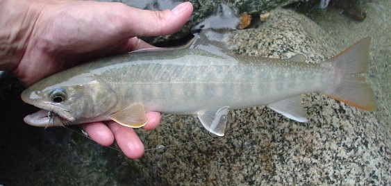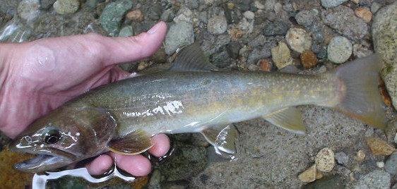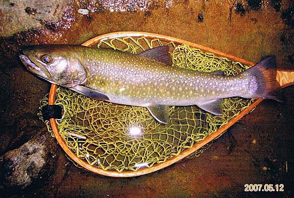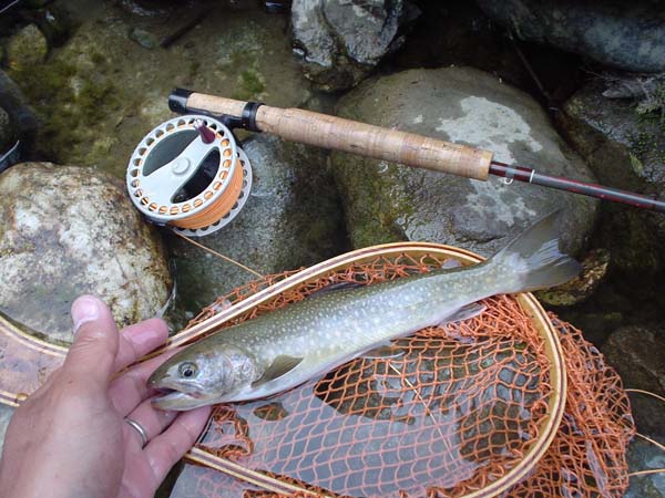 | フィッシャー:加藤邦人様 日時:2007/08/16 場所:庄川支流 魚種とサイズ:イワナ30.2cm アタリフライ:#12エルクヘアカディス 店主コメント:尺イワナゲットおめでとう! 努力が報われましたね、努力は人を裏切らない! |