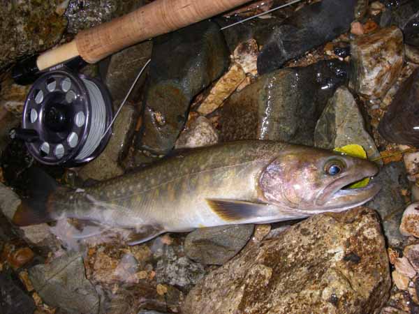 | フィッシャー:谷田部剛様 日時:2007/07/01 場所:高原川支流 魚種とサイズ:イワナ32、31、30cm アタリフライ:#10フラッタリングカディス 店主コメント:尺イワナ、3本ゲットは素晴らしい!!! |
