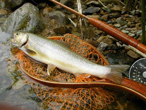 | フィッシャー:前田浩二様 日時:2011/07/03 場所:長野県、西野川 魚種とサイズ:ヤマトイワナ32cm 店主コメント:凄い尾ビレですね。尺イワナゲット、おめでとう! |