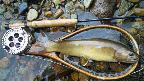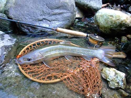 | フィッシャー:豊場名人 日時:2011/06/12 場所:富山県、庄川支流 魚種とサイズ:イワナ31、30.5cm ヒットフライ:#14アダムスパラシュート 店主コメント:尺イワナ、2本ゲット、おめでとう! |