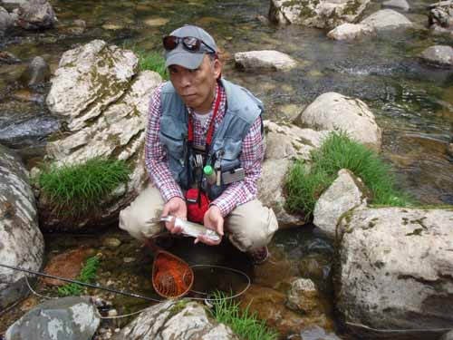 | フィッシャー:豊場名人 日時:2011/06/05 場所:富山県、庄川支流 魚種とサイズ:イワナ30cm ヒットフライ:#16アダムスクラシック 店主コメント:尺イワナゲット、おめでとう! さすがです。 |