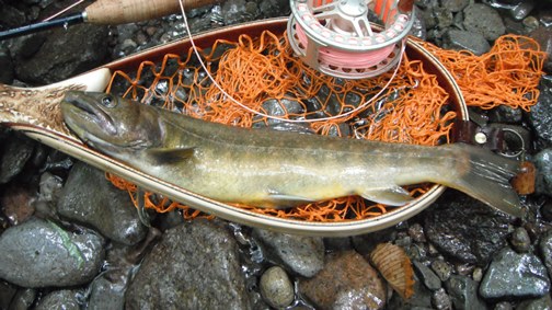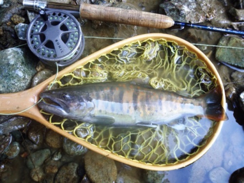 | フィッシャー: nishide 様 日時:2014/05/31 場所:長野県 木曽川水系流 魚種とサイズ:尺イワナ ヒットフライ:#17ソラックスダン 店主コメント:尺イワナ、今年もゲットおめでとう! |