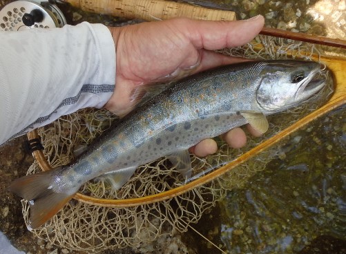 | フィッシャー: 山崎良太様 日時:2015/06/13 場所:岩手県 和賀川水系 魚種とサイズ:イワナ30.3cm ヒットフライ:#11ブラックパラシュート 店主コメント:尺イワナゲット、おめでとう! 東北に遠征してよかったですね、おめでとう! |