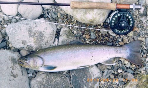 | フィッシャー: 黒宮 様 日時:2015/05/23 場所:岐阜県 宮川下流 魚種とサイズ:イワナ45cm!!! ヒットフライ:#6ヒゲナガ 店主コメント:渓流のドライフライでは、最大サイズですね。 素晴らしい!!! |