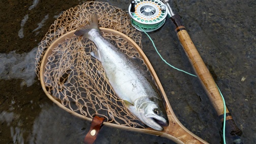 | フィッシャー: 黒宮様 日時:2015/06/17 場所:北海道 道東 魚種とサイズ:ニジマス55cm ヒットフライ:#6グレートセッジ 店主コメント:素晴らしいコンディションのニジマス。 遠征した甲斐がありましたね、おめでとう! |