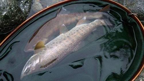 | フィッシャー: 庄川名人I様 日時:2015/07/11 場所:岐阜県 庄川支流 魚種とサイズ:ヤマメ42cm ヒットフライ:#16エルクヘアカディス 店主コメント:素晴らしいヤマメ、ダム差しのヒレピンゲット おめでとう! |