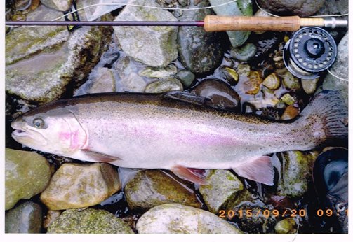 | フィッシャー: 黒宮様 日時:2015/09/20 場所:富山県 庄川支流 魚種とサイズ:ニジマス60cm 店主コメント:ドライでゲットは素晴らしい! |