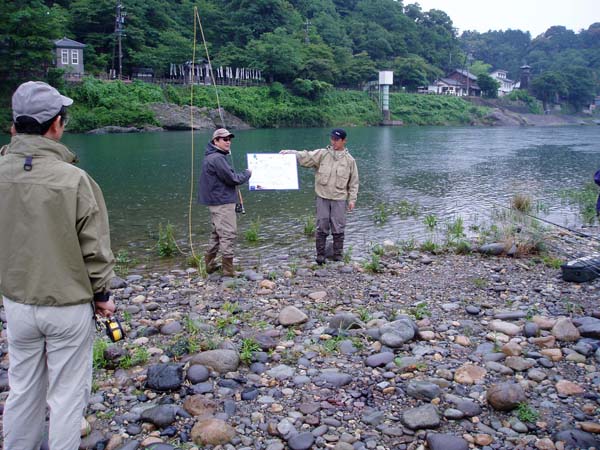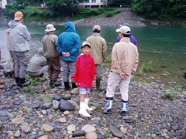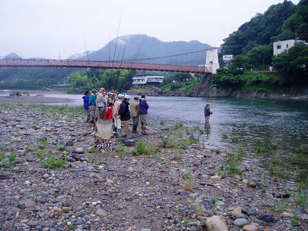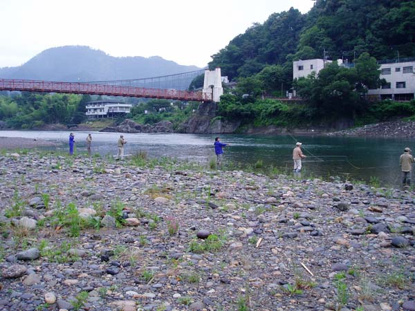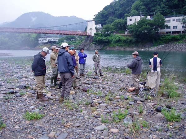そのあとは各自、流れに立ち込んで講師の動きをまねてキャスト。