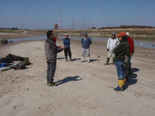 すでに来ていただいていた常連の皆様と、ただいまロッドのセット中。